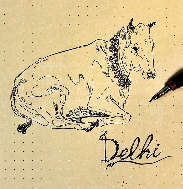 コブ牛(Zebu)大好きです。可愛い。インド取材旅行時、コブ牛をたくさん見れて幸せでした。Gペン一発描き。