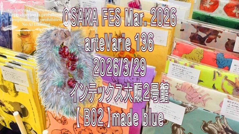 OSAKA FES Mar. 2026 / arteVarie 136 https://www.akaboo.jp/event/item/20202870.html2026/3/2911:00~15:00インテックス大阪2号館【 B02 】made blue 蝋引きブックカバー各種、画集、アートポスター、レターセット・便箋、ポストカードetc…を販売予定。よろしくお願いいたします! 配置図。当日 […]