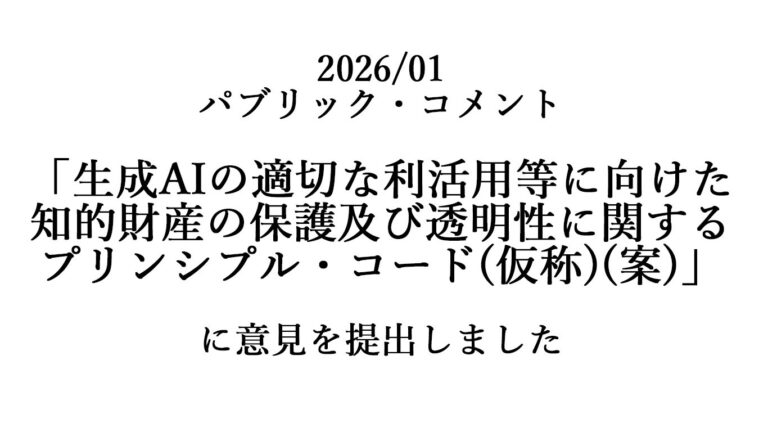 パブリック・コメント「生成AIの適切な利活用等に向けた知的財産の保護及び透明性に関するプリンシプル・コード(仮称)(案)」に意見を提出しました